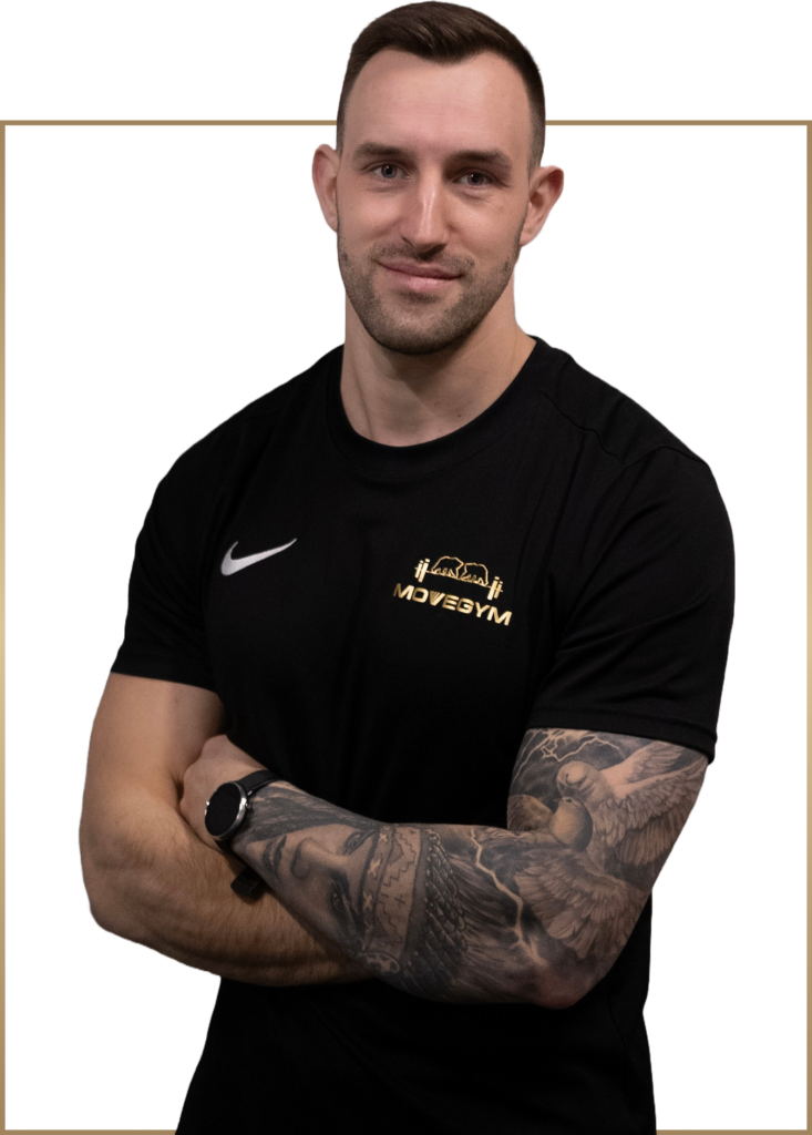 Mam na imię Jakub i od 8 lat jestem certyfikowanym Trenerem Przygotowania Motorycznego a także współzałożycielem studia treningowego MOVEGYM. Swoją wiedzę zdobywałem na Akademii Wychowania Fizycznego i Sportu w Gdańsku, gdzie uzyskałem tytuł magistra Wychowania Fizycznego ze specjalizacją trenera Piłki Siatkowej. Obecnie studiuję Fizjoterapię na Wyższej Szkole Zdrowia w Gdańsku. Wybrałem ten kierunek, aby poszerzać swoją wiedzę i zwiększać kompetencje, dzięki czemu będę mógł skuteczniej poprawiać nie tylko Twoją sprawność, ale przede wszystkim zdrowie. Doświadczenie zbierałem na kilku dużych siłowniach w Trójmieście, gdzie współpracowałem z wieloma osobami, którzy dzisiaj są nie tylko moimi podopiecznymi, ale również dobrymi przyjaciółmi. Dodatkowo uczestniczyłem w wielu kursach i szkoleniach m.in. w tematyce olimpijskiego podnoszenia ciężarów, budowania siły, spalania tkanki tłuszczowej, treningu zdrowotnego, terapii manualnej, suplementacji oraz regeneracji powysiłkowej, uczestniczyłem również w szkoleniu dotyczącym bezpiecznego treningu kobiet w ciąży. Łącze swoje pasje, naukę i doświadczenie, aby mieć jak najwięcej narzędzi niezbędnych do tego, abyś to właśnie Ty stał/a się najlepszą wersją samego siebie.